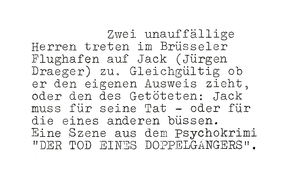 Darsteller: Jürgen Draeger (Jack), Werner Pochath (Cutler), Nicole Badal (Peggy), Hedy Frick (Margaret), Ivan Desny (Hoggan), Alexander Allerson (Joe), Jaak Van Hombeek (Autohändler)